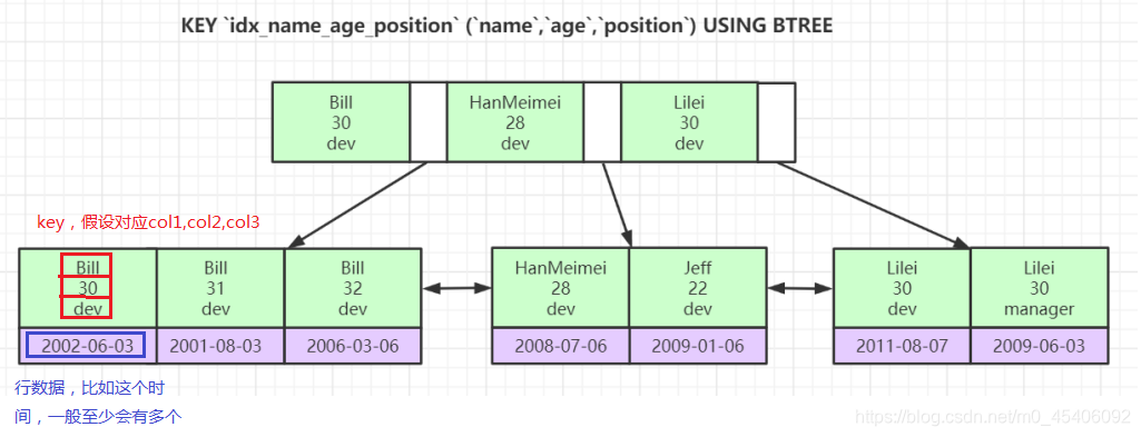 简单的理解就是只从最左面的开始组合。组合索引的第一个字段必须出现在查询组句中,并且不能跳跃,这个索引才会被用到,因此并不是只要包含这三列的查询都会用到该组合索引,下面的几个SQL就会用到这个组合索引: